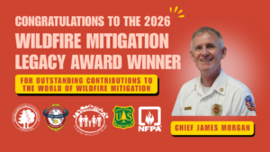 The Legacy Award recognizes an individual’s outstanding contribution to the larger world of mitigation who have persisted in vocalizing the mitigation message, spoken truth to power, and helped create the tools and best practices that make up fire adaptation today. Chief James Morgan of Pinetop Fire District has consistently gone above and beyond over many years, assuming administrative, business, and program management duties in addition to his regular responsibilities. Fuel breaks and mitigation work in the community will help not just the homes treated but those nearby. His leadership helped shape the community’s approach to wildfire mitigation and inspired those around him.